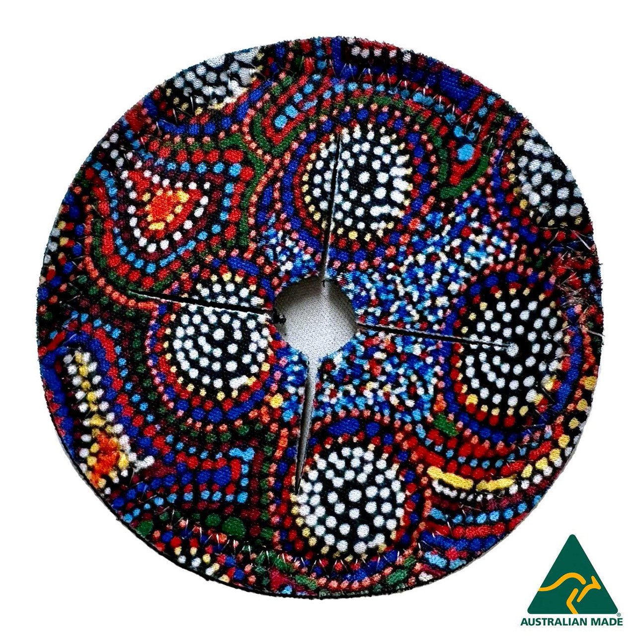 Crafted from durable neoprene, each cover features stunning artworks by Aboriginal artists from Utopia, Central Australia. Available in two distinct shapes - Star and Round - these covers add a touch of elegance and individuality to any event.