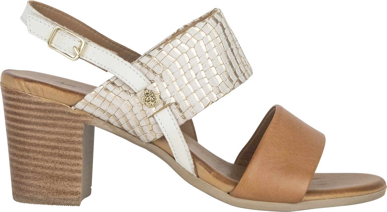 These fun heels will be sure to turn heads. Designed with two soft leather straps and an adjustable leather sling back. Although a high heel, you have plenty of support thanks to the block heel design, the soft padded insole, and the flexible outsole.