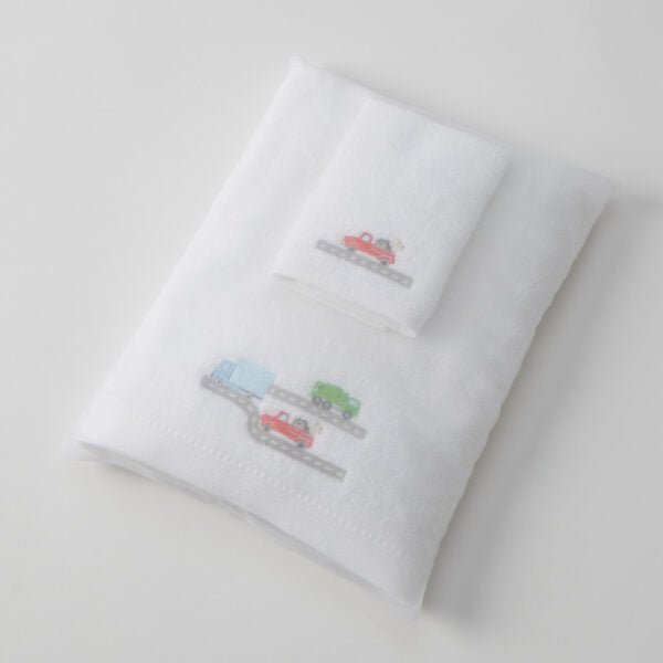 Make bath time extra special with the Trucking Along Bath Towel and Face Washer Set, perfect for bub’s first bath and beyond. Crafted from super soft, absorbent cotton towelling that’s gentle on delicate skin and features intricately embroidered trucks and vehicles.