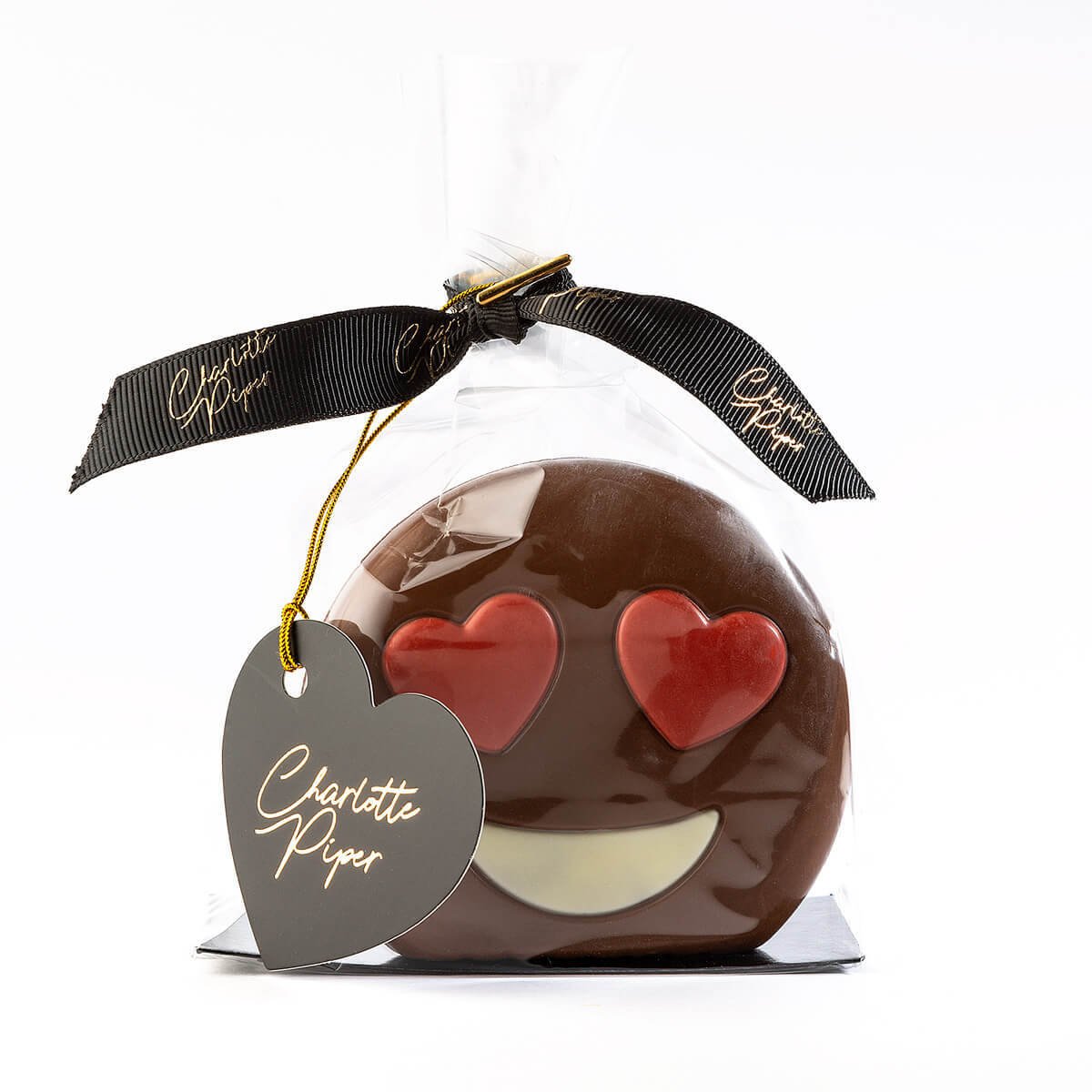 Something Fun & Loving To Give Someone You Love, Hollow Milk Chocolate Emoji Love Eyes, presented beautifully in cello, Charlotte Ribbon & Tag