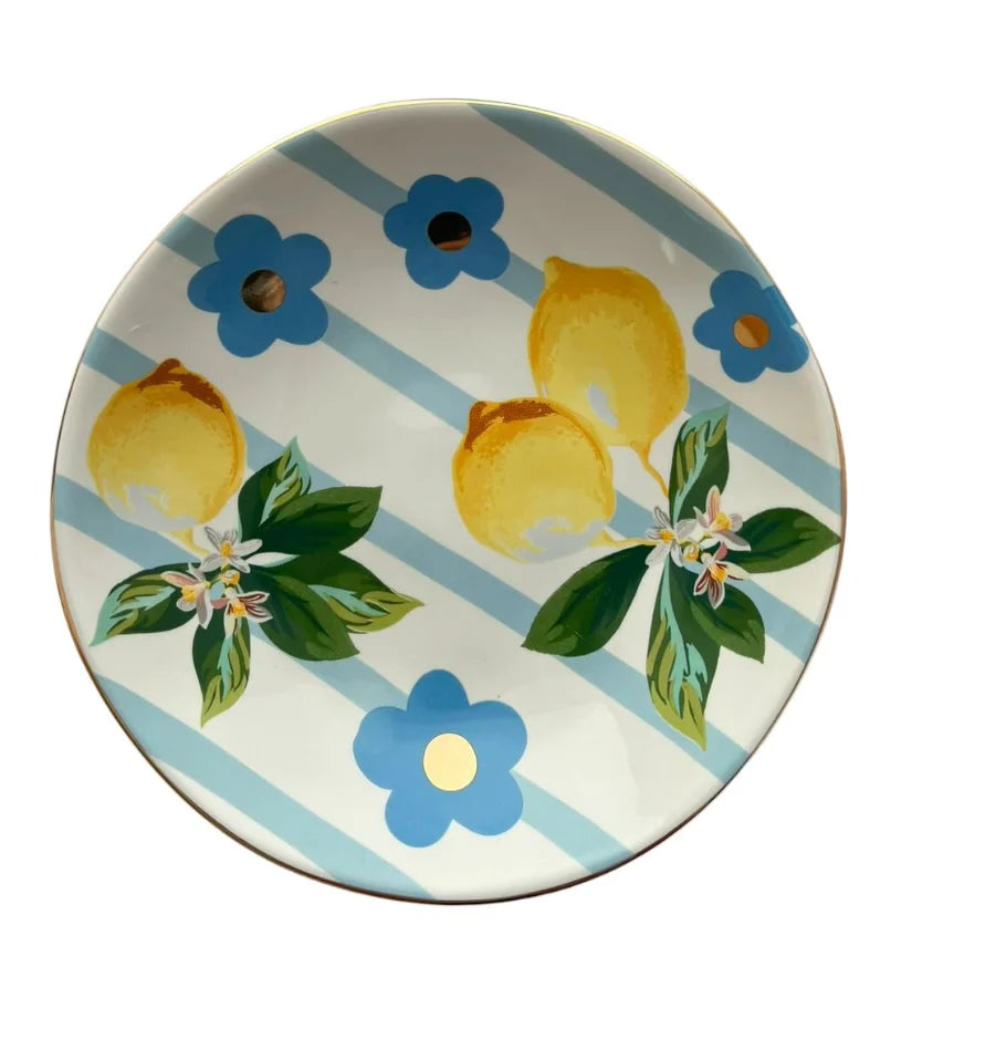 Ceramic Lemon Trinket bowl with gold detail 12cm diameter