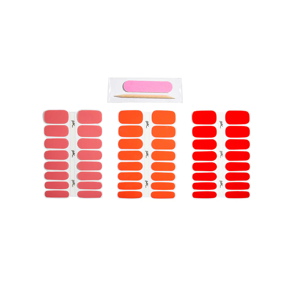 ❤︎ Each colour has 16 Semi cured Gel Nail Stickers in 8 different sizes. (Use a UV Lamp to cure our gel nail stickers)